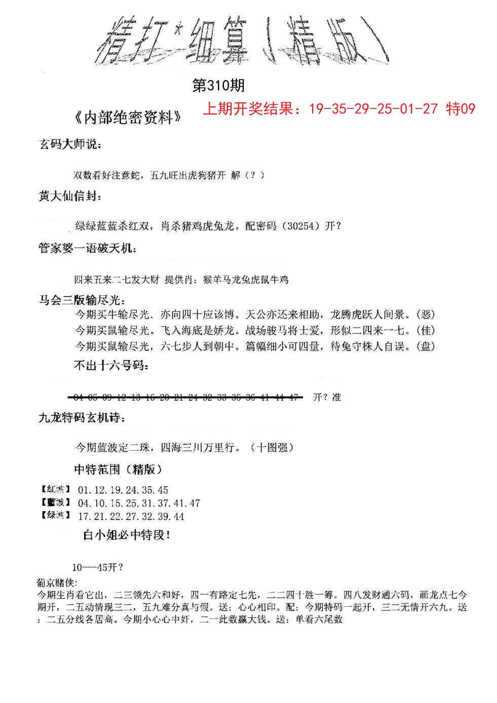 | 310期刘伯温《三头中特》【2.4.3】开?00准 |