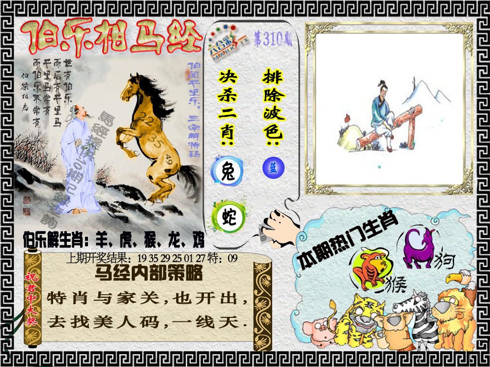 | 第310期 | 主:龙狗鼠 防:猴牛兔马 | 开?00 |