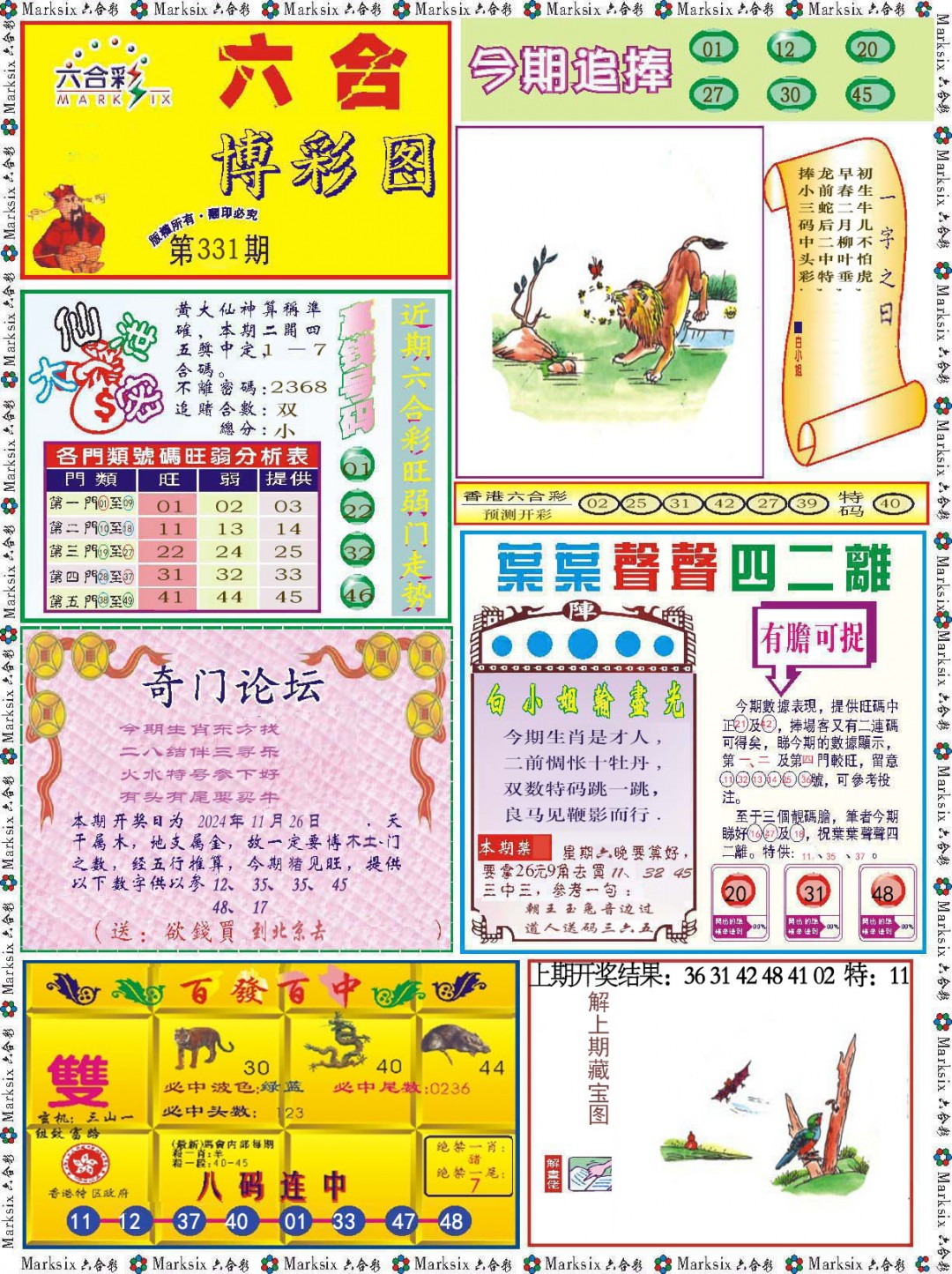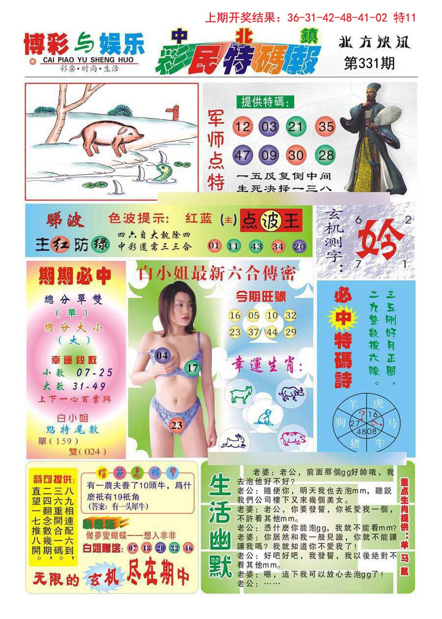 | 第331期 | 主:羊鸡鼠 防:狗马龙猴 | 开?00 |