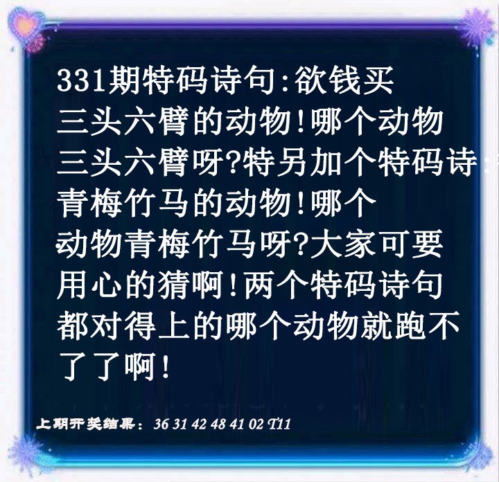 331期:【欲钱解特诗句】开?00(中) 马羊虎狗发大财,本期特码出大数 |
