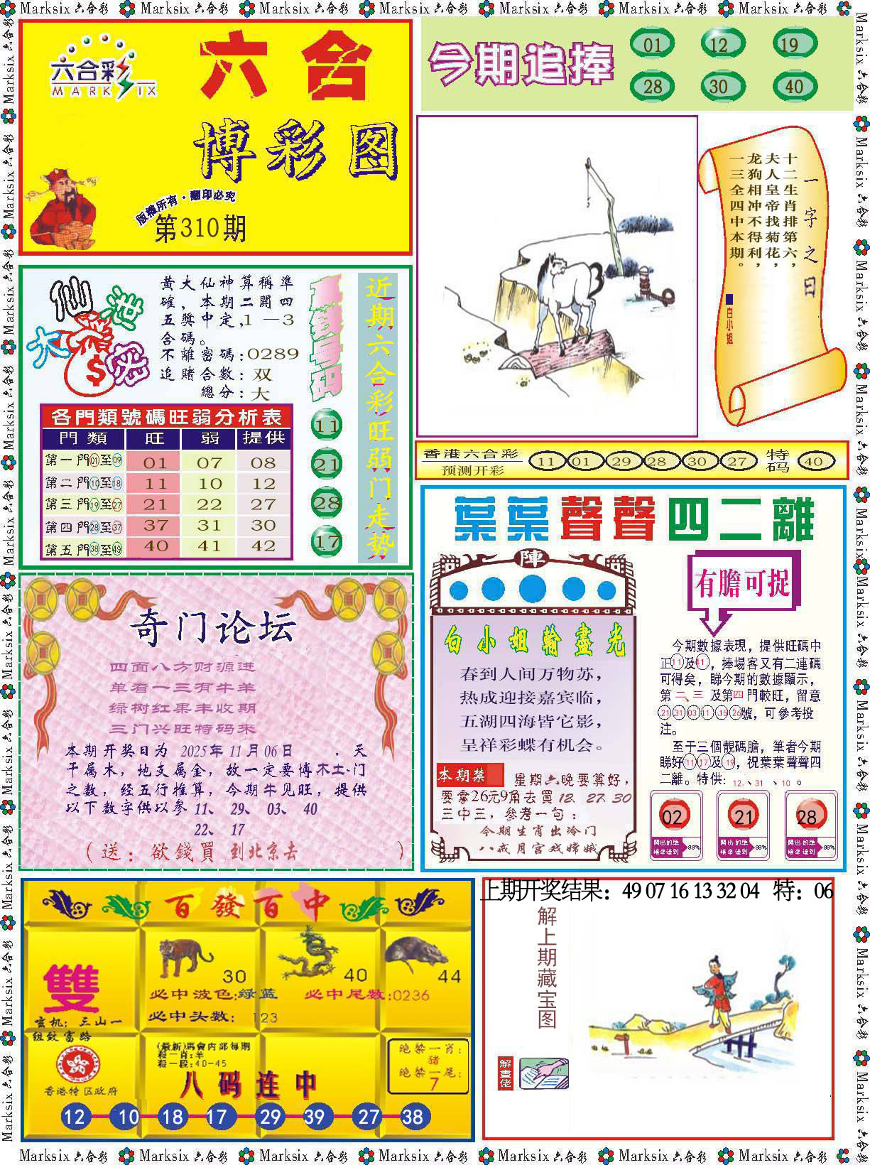 | 第307期 | 主:兔马狗 防:鸡羊龙虎 | 开狗20 |
